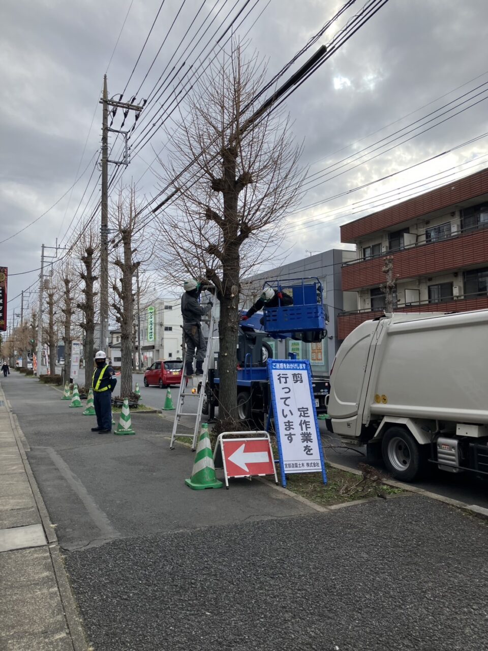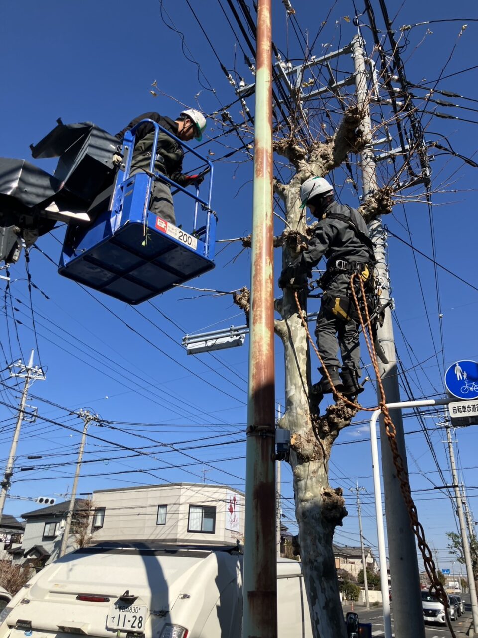 先月から市内の街路樹の高木剪定作業に入っています。